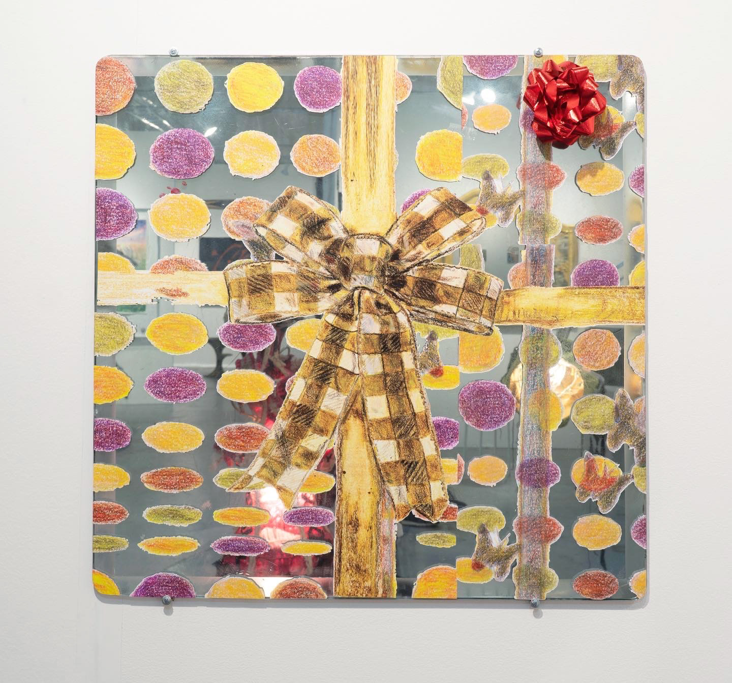 Vinyl, archival tape, bow, mirrored glass