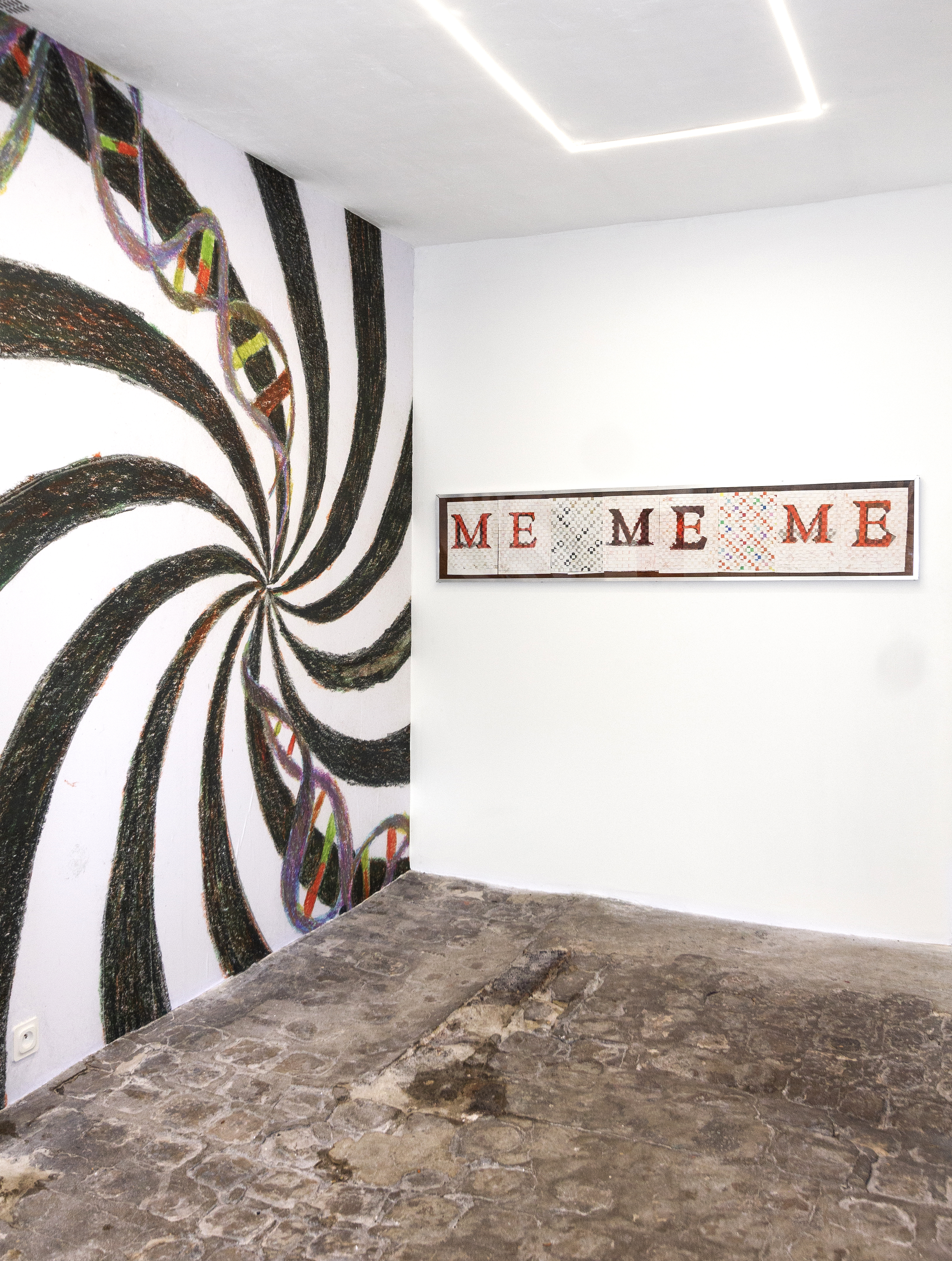 Pony presents Tomorrow, an exhibition of all new work by the New York based artist and writer Justin Chance. Doubling down on the artist’s interests in language, time and the conventions of the everyday, the exhibition will feature quilts, works on paper, one large woven drawing and a site-specific wallpaper installation. Indulging in the artist’s fascination with the word “tomorrow” as a concrete assertion of the unknown, the exhibition explores ideas of solipsism, mortality, presumption and the role of ego in thoughts, considerations, doubts, worries and expectations surrounding the future. With spirals, a world map and proclamations of “ME!” colored in red, “Tomorrow”, the artist’s first solo exhibition in France examines time as an abstraction, attendant and unrelenting force.